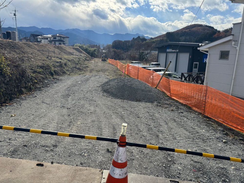 舗装はせず、いったん砂利道として利用します。