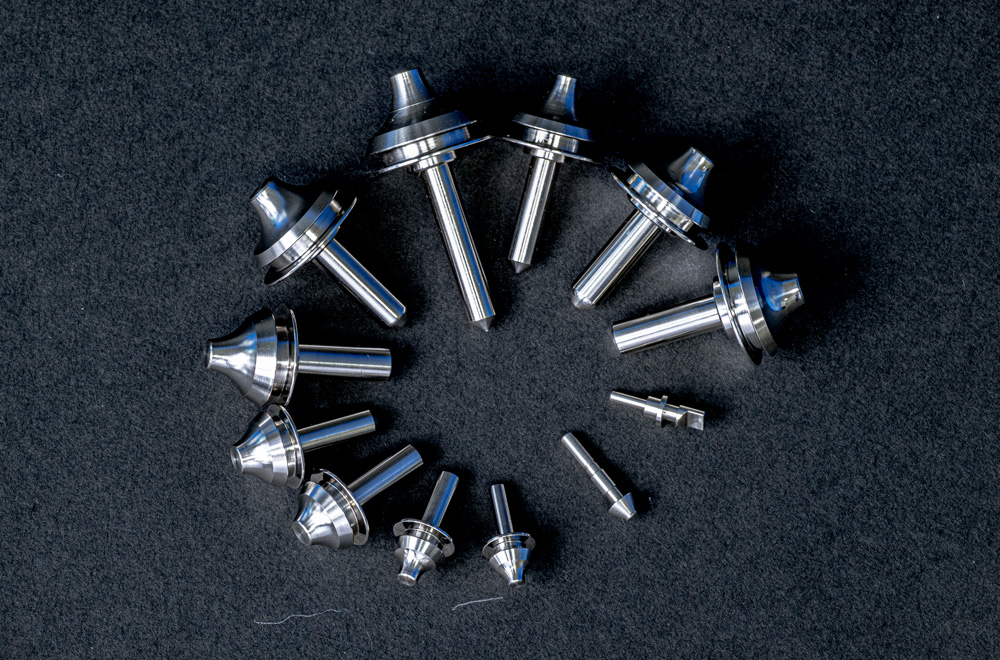 様々な形状の小径部品でも切りくず絡みもなく、安定加工が可能。太い材料からの削り出しにより、Φ3以下の小径部品も加工可能です。