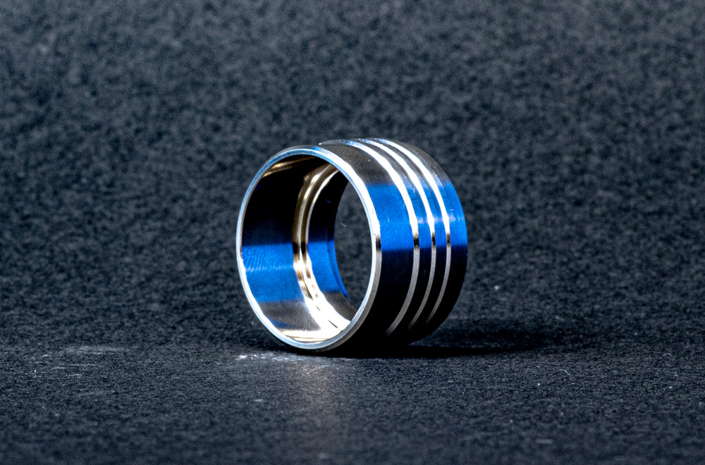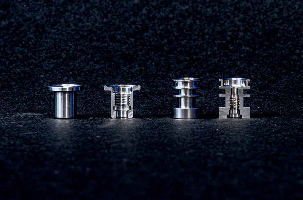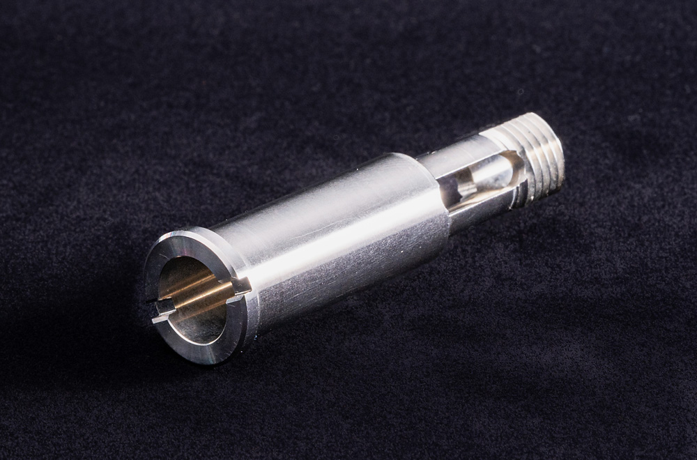 外径両側テーパーねじ、内径座ぐり加工、内径Eリング用ミゾ加工。