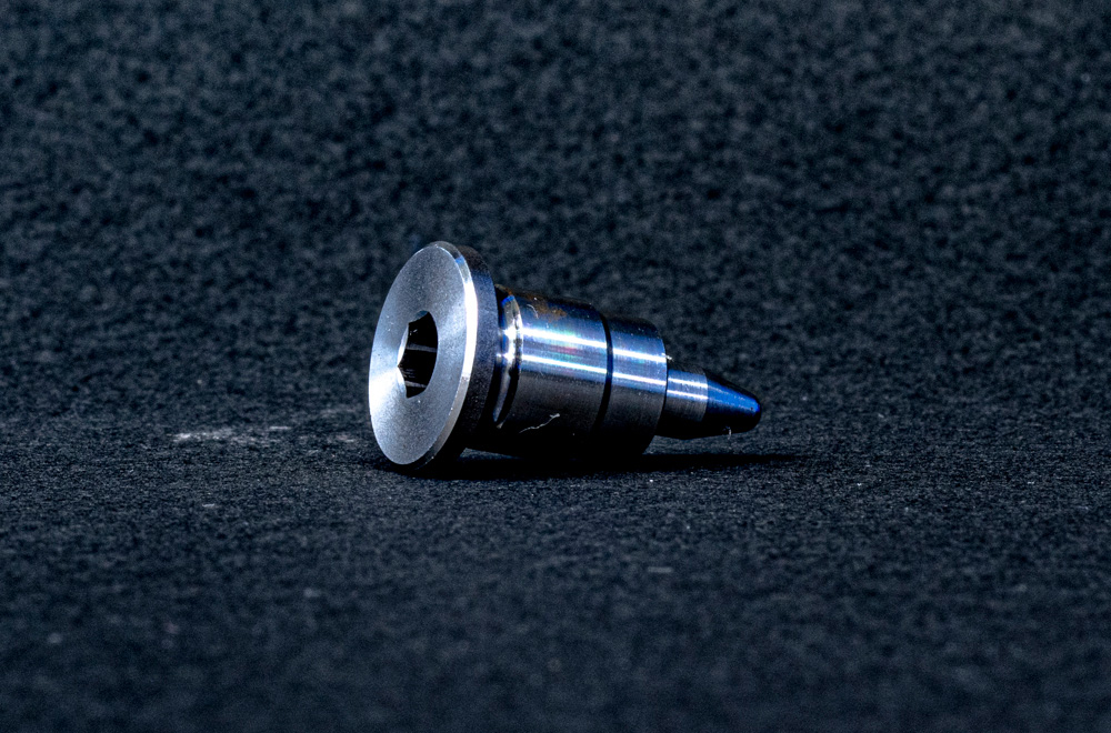 六角穴加工H6.0、端面ミゾRぬすみテーパー加工、六角穴まで機械内で完成。