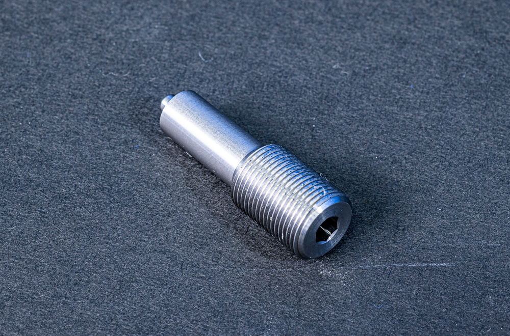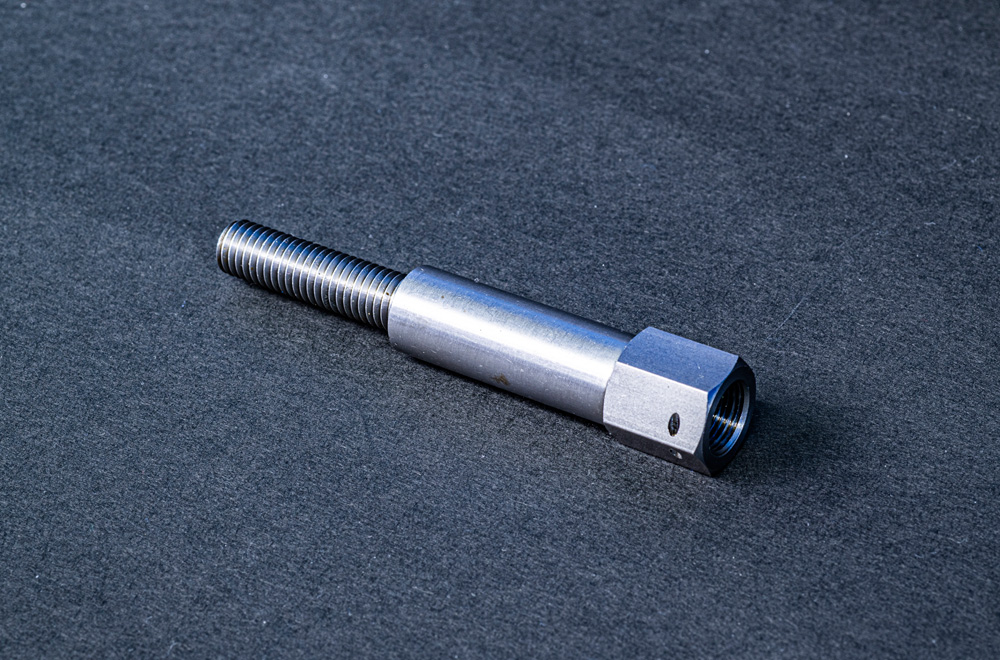 L=100ミリ、外径M10、内径M12、内径二段穴貫通、六角斜め部への穴あけ